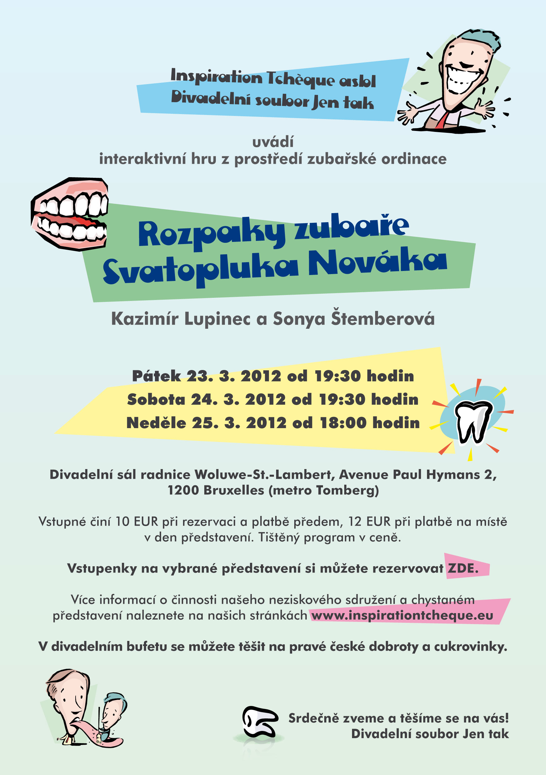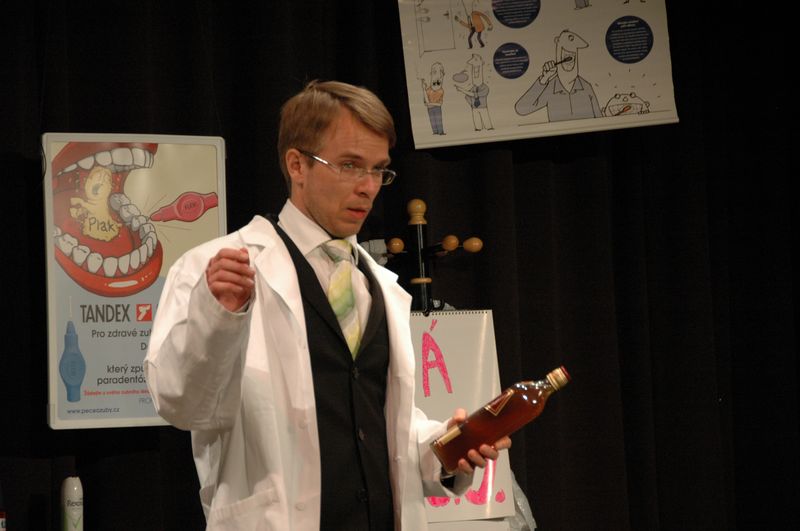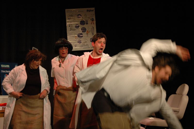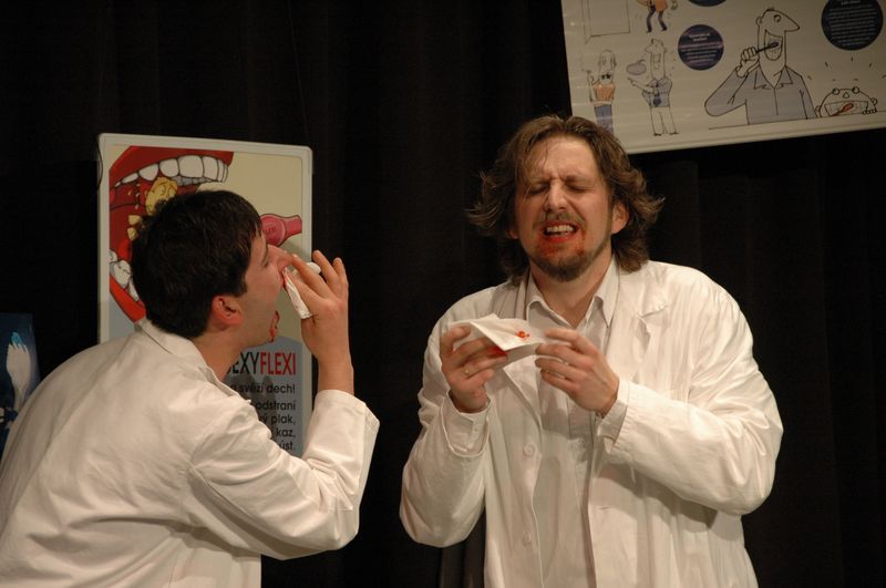 Interaktivní načernalá komedie ze zubařského prostředí, do které jsou zapojeni i diváci, kteří si mohli vychutnat: